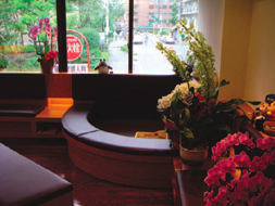明るい陽光と豊かに配した植物に囲まれた開放的なスペースで、リラックスしてお待ちいただけます。